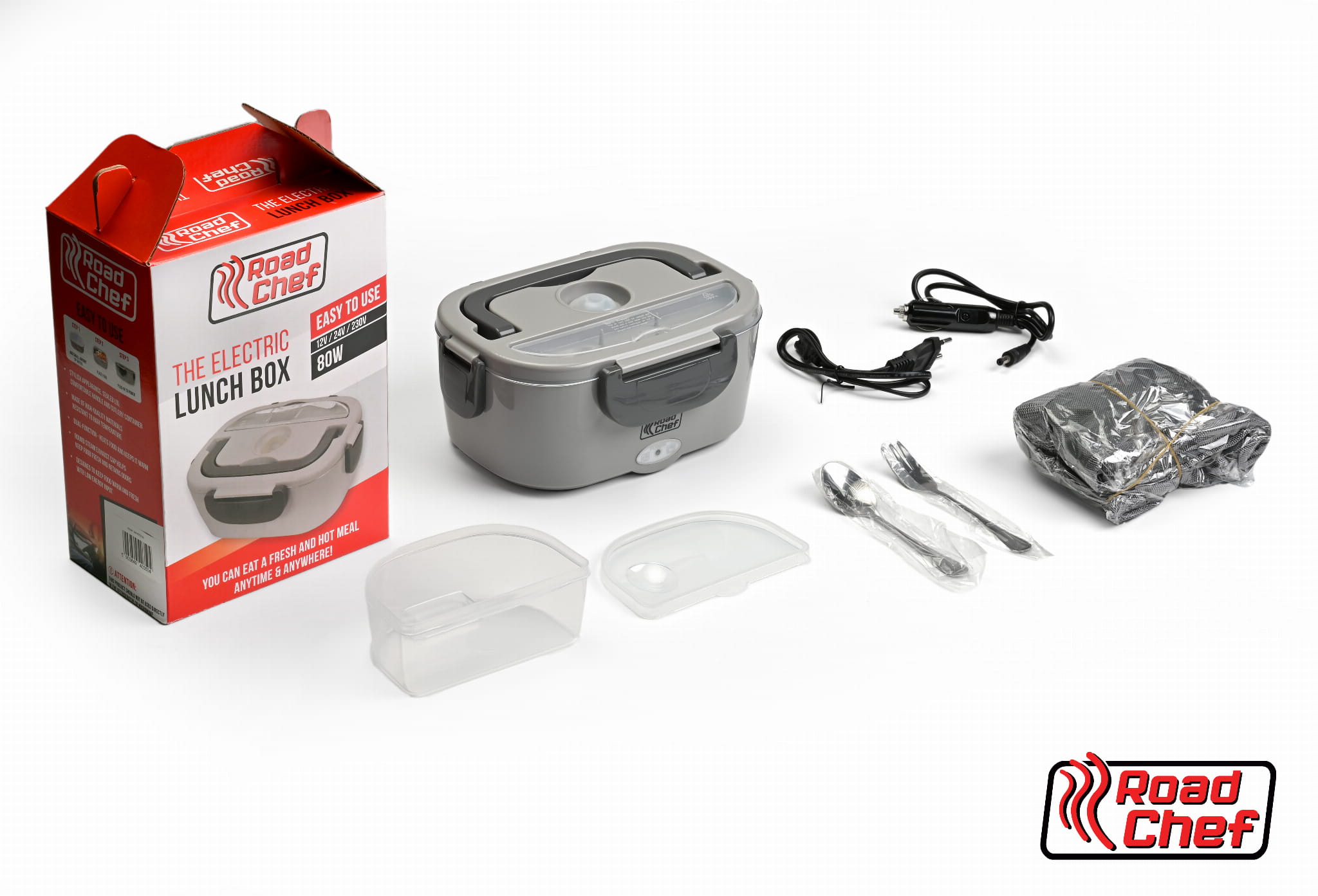 Elektryczny podgrzewacz na żywność Road Cheef to połączenie funkcjonalności i mobilności. Solidnie i estetycznie wykonane urządzenie wyposażone jest w element grzewczy PTC, który umożliwia podgrzanie jedzenia do 60° C w ciągu 20 minut. Podgrzewacz zamykany jest szczelnie na zatrzaski, które blokują dostęp powietrza. Dzięki temu posiłek zachowuje świeżość na dłużej. Lunch Box to rozwiązanie dla ludzi ceniących aktywność i zdrową dietę. Idealnie sprawdzi się w pracy, na studiach, w podróży, na działce i podczas wakacji na kempingu.