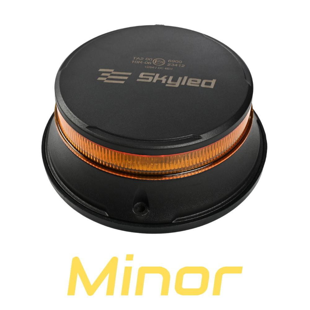 Kogut niski LED SKYLED Minor (3 śrubki, pomarańczowy odbłyśnik, czarna obudowa, R65, 12/24V) średnica: 133 mm, nr kat. 13SL10004