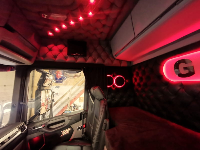 Komplet pięciu sztuk czerwonych lampek punktowych, tzw. ‘burdelówki’, stosowane w kabinie ciężarówki.