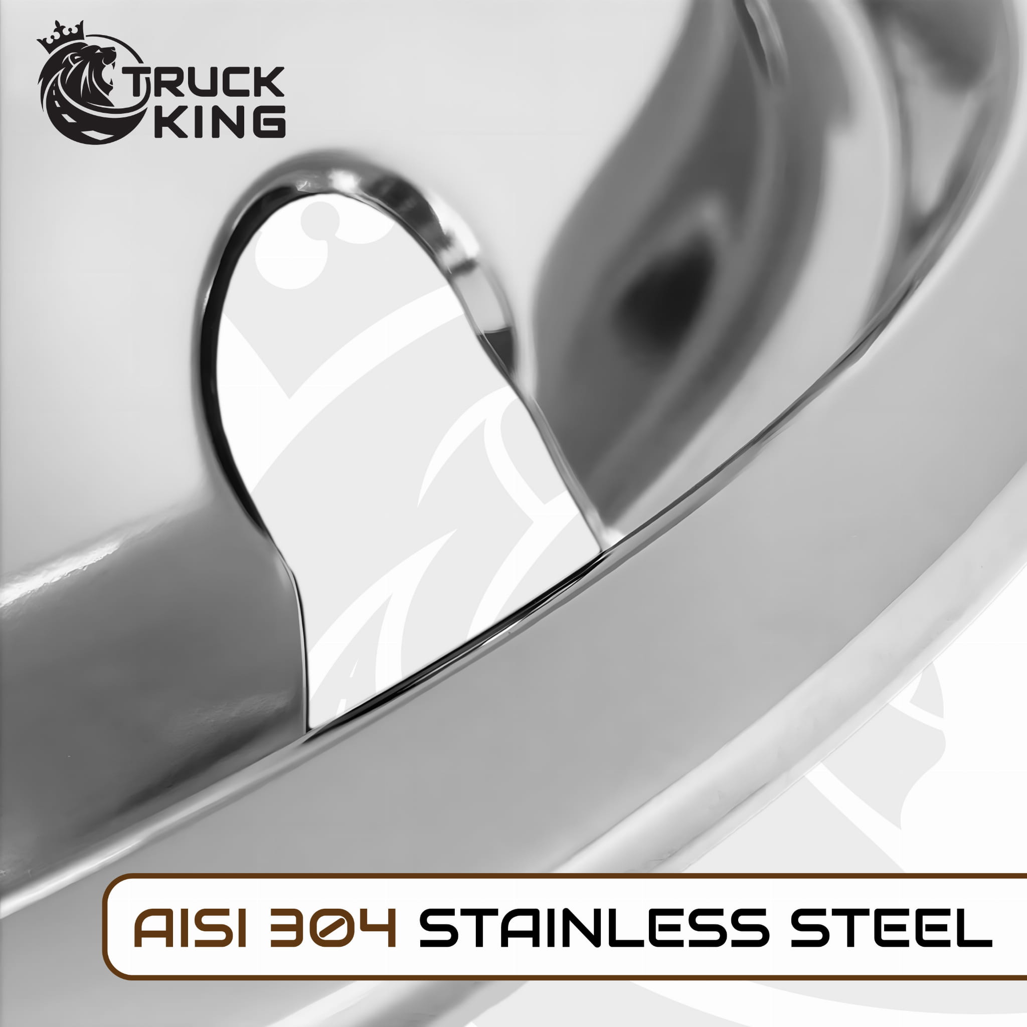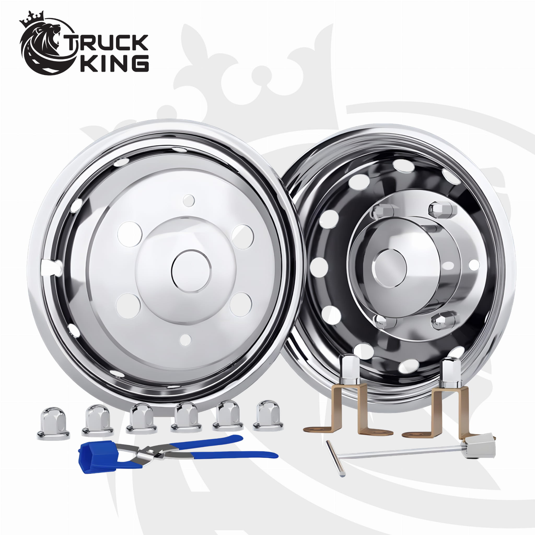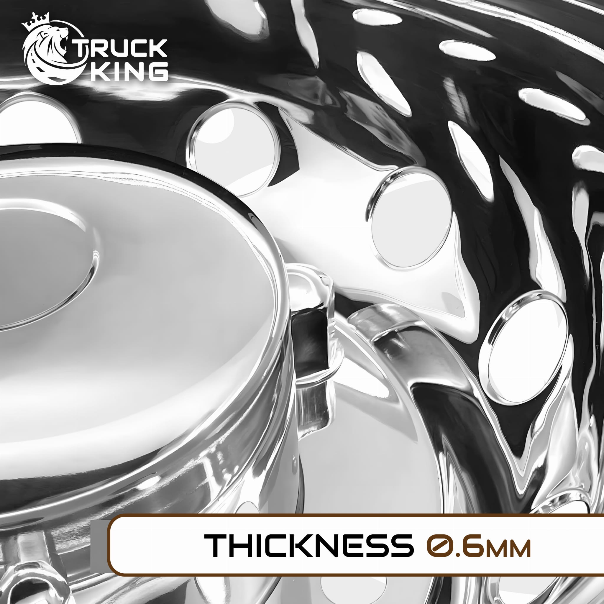 Komplet kołpaków typu Euroliners wykonanych z najwyższej jakości stali nierdzewnej. Poddane procesom polerowania celem nadania błysku ich powierzchni. Odporne na korozję oraz inne warunki atmosferyczne. Montowane na śruby. Imitują wyglądem felgi aluminiowe.