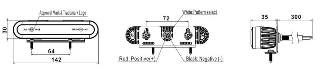 Lampa ostrzegawcza SKYLED 30x142 (stroboskop - pomarańczowe światło LED) R10,R65, IP67 , nr kat. 13SL12003