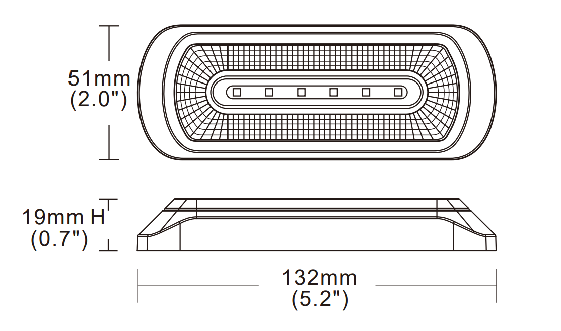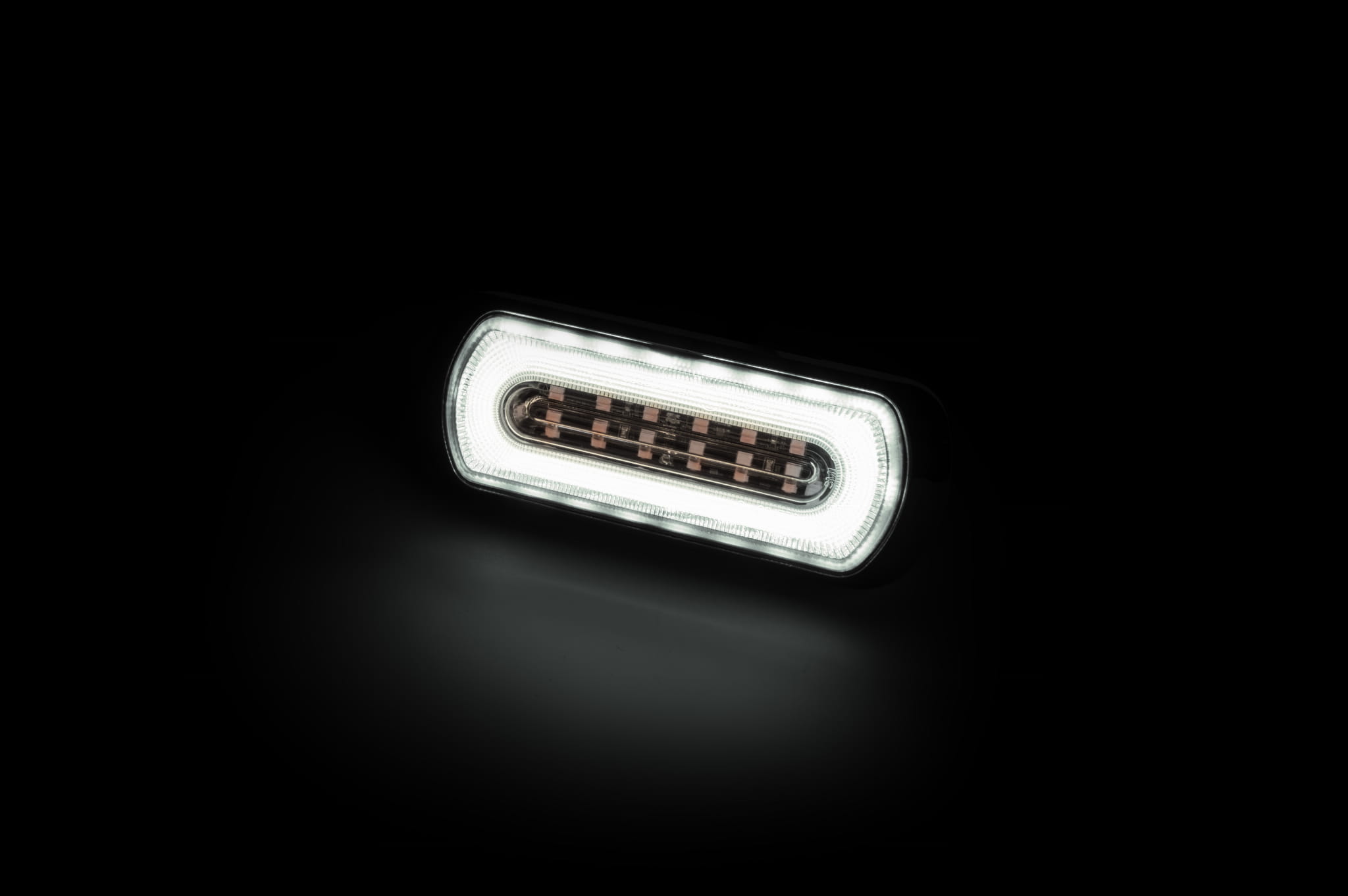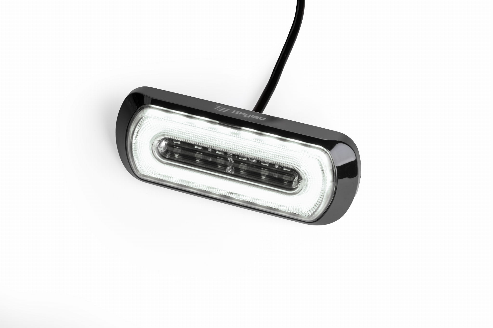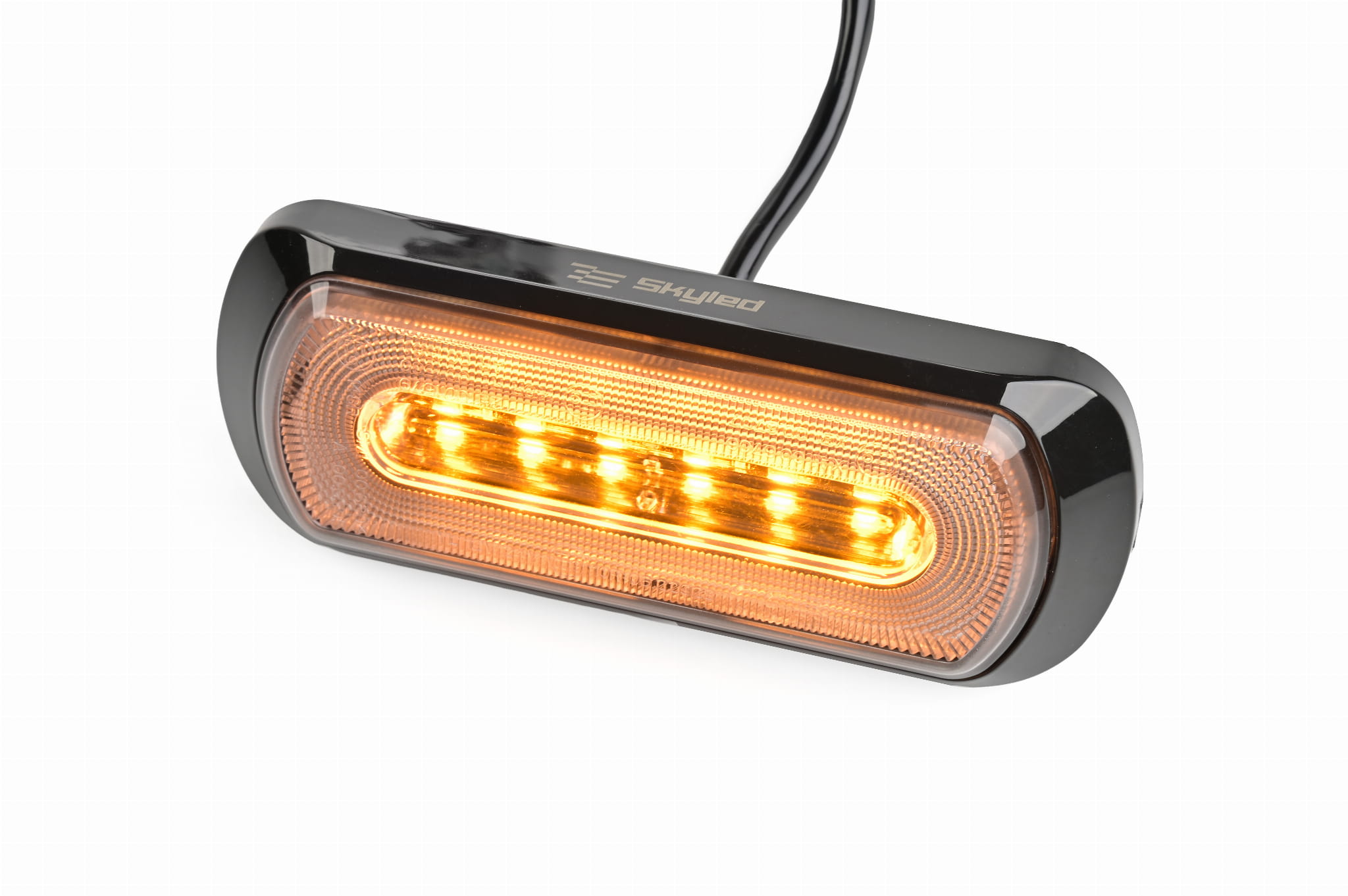 Lampa ostrzegawcza SKYLED z białym światłem pozycyjnym 132x51 mm (stroboskop pomarańczowe światło 6 LED) R10 R148 R65 SAE, nr kat. 13SL12045OW