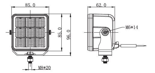 Wysokość z wspornikiem: 96 mm