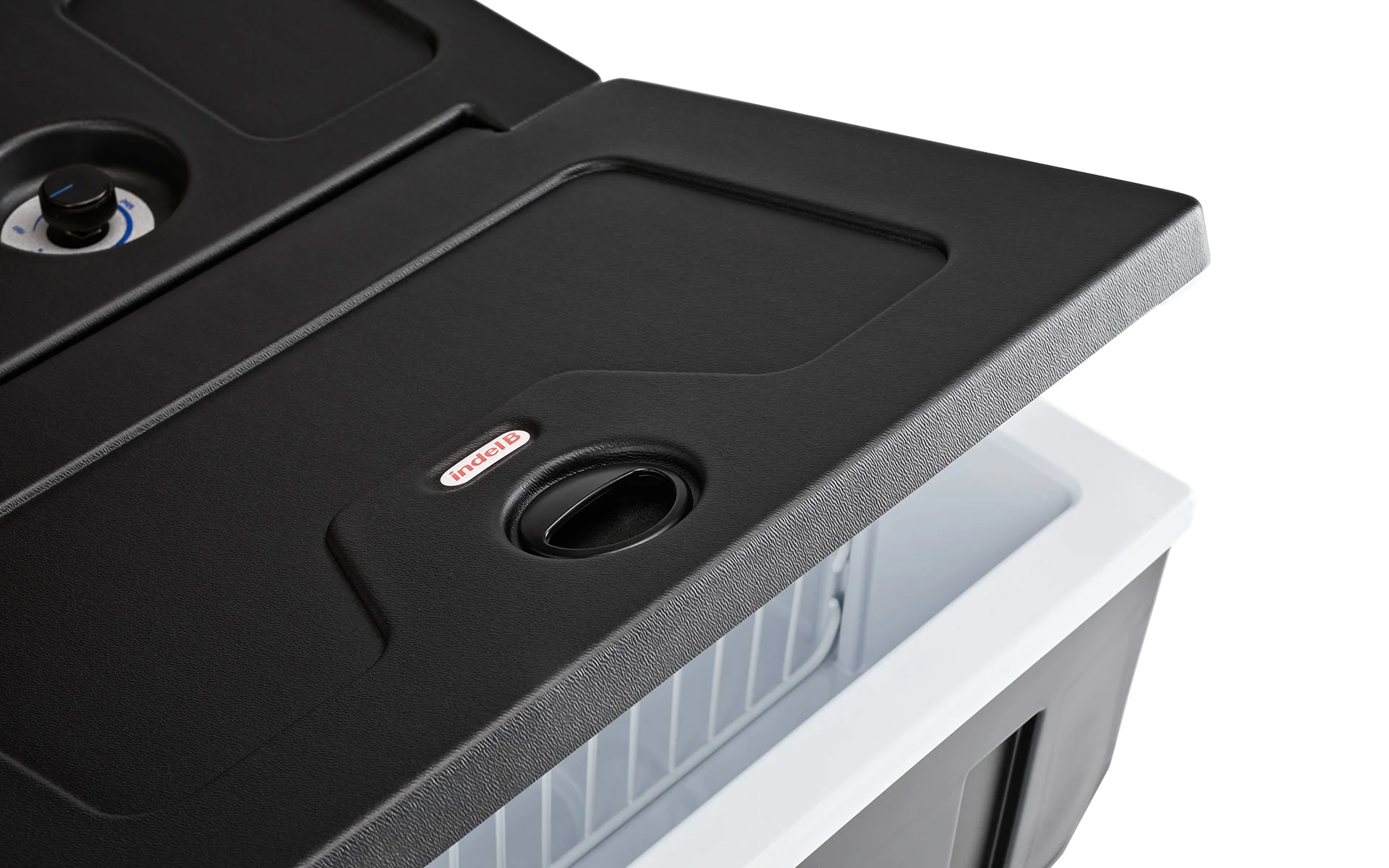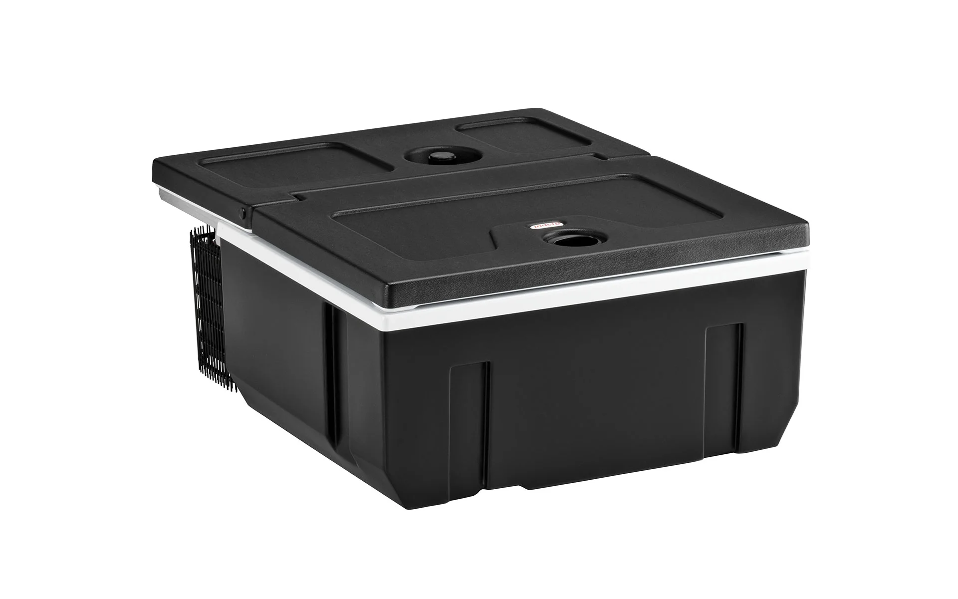 Lodówka sprężarkowa pod zabudowę włoskiej firmy INDEL B TB22AM. Przeznaczona do MB Actros MP4/MP5 w wersjach z podłogami z tunelem. Wysoka wydajność chłodzenia zapewnia dłuższe utrzymanie świeżości żywności i napojów, niezależnie od warunków atmosferycznych na zewnątrz.