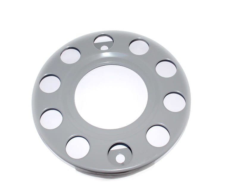 Osłona na felgę 22,5, malowana proszkowo na szaro, otwarty środek, mocowana na śruby, 10 otworów, PCD 335mm, nr kat. 16CM10VH22