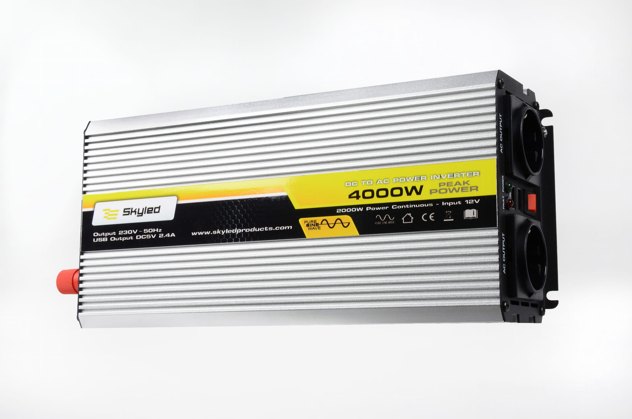Przetwornica zaprojektowana została do zasilania urządzeń elektrycznych i elektronicznych wymagających napięcia przemiennego 230V z akumulatorów oraz instalacji samochodowych o napięciu stałym 12V. Przetwornice SKYLED wykonane są z najwyższej jakości materiałów. Charakteryzują się nowoczesnym wyglądem oraz prostą i intuicyjną obsługą.