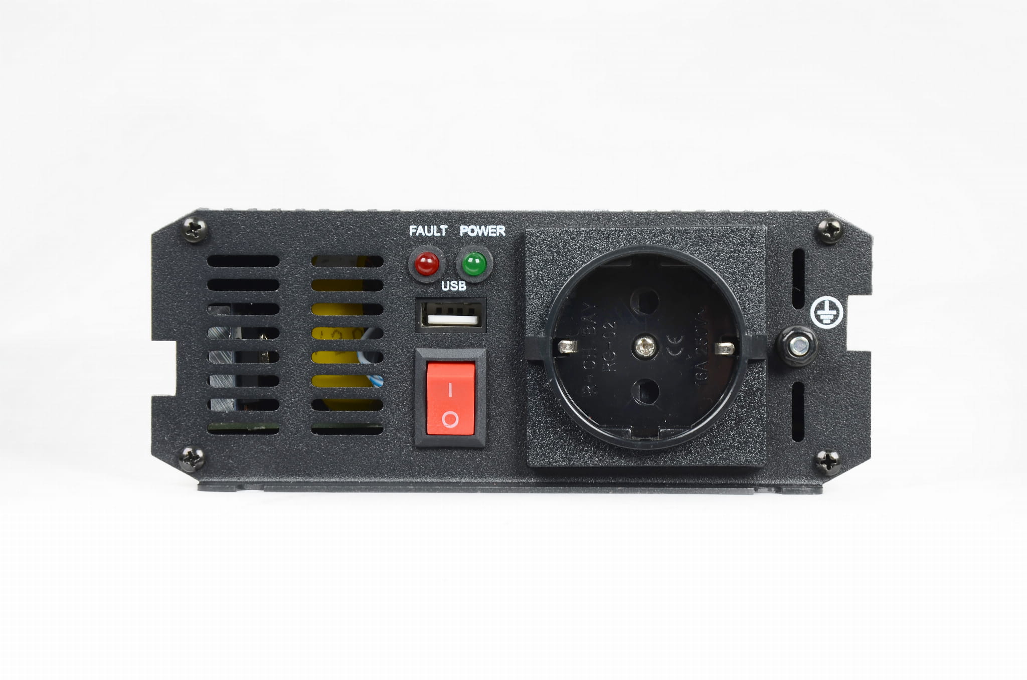 Zadaniem przetwornicy jest zmiana prądu stałego 12 V na prąd zmienny 230 V , dokładnie takie, które znajduje się w gniazdku domowym (Typ E) na terenie całej Europy,