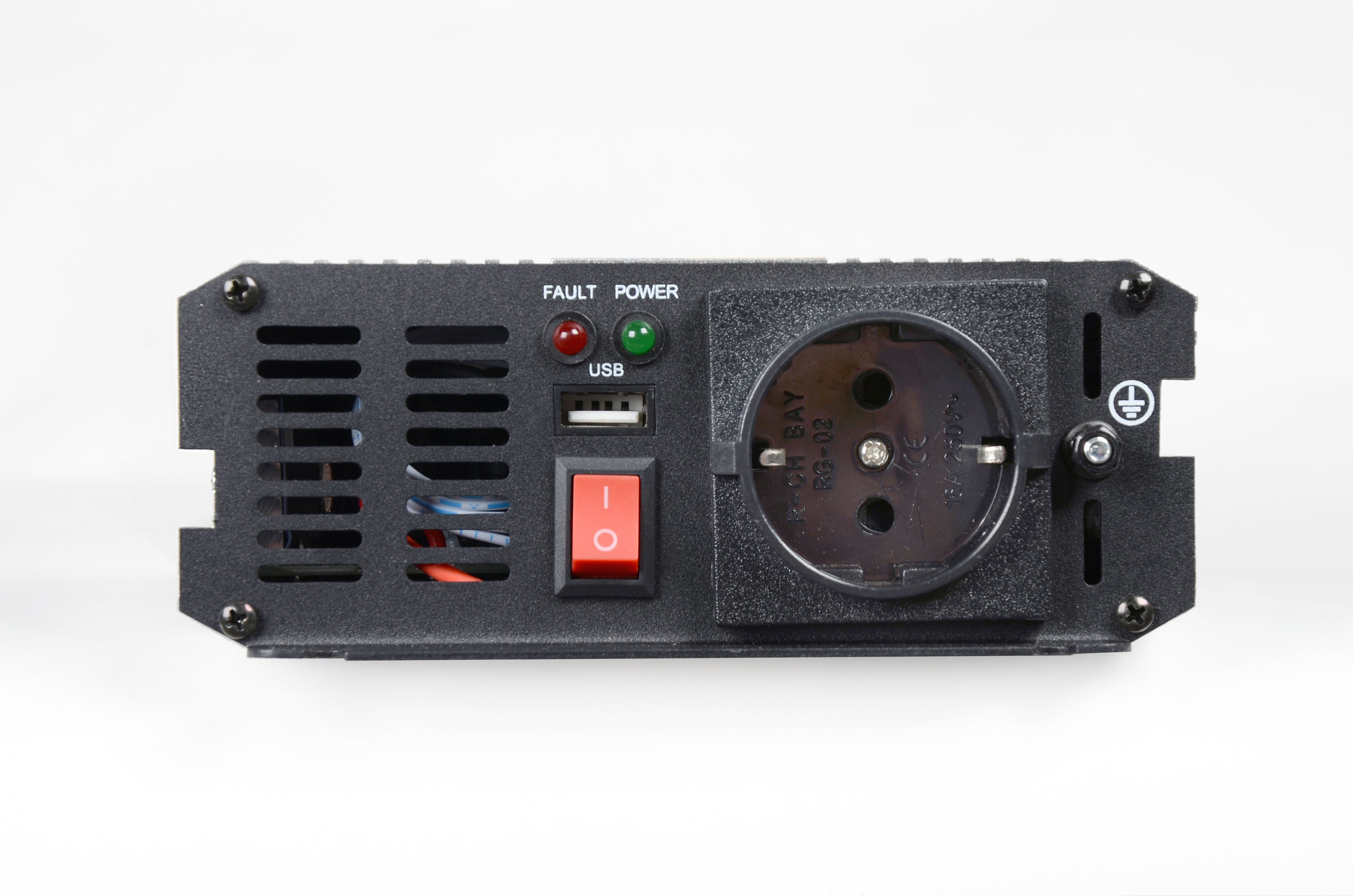 Zabezpieczenie przed rozładowanie akumulatora: tak Zabezpieczenie przed przegrzaniem: tak Zabezpieczenie przed zwarciem: tak Przetwornica wytwarza na wyjściu tzw. sinusoidę modyfikowaną. Jest to napięcie przemienne o przebiegu prostokątnym, którego wartość skuteczna jest identyczna, jak wartość skuteczna przebiegu sinusoidalnego występującego w sieci energetycznej. Dzięki zastosowaniu takiej metody generowania napięcia, możliwe jest znaczne ograniczenie ceny i zwiększenie bezawaryjności całego urządzenia.