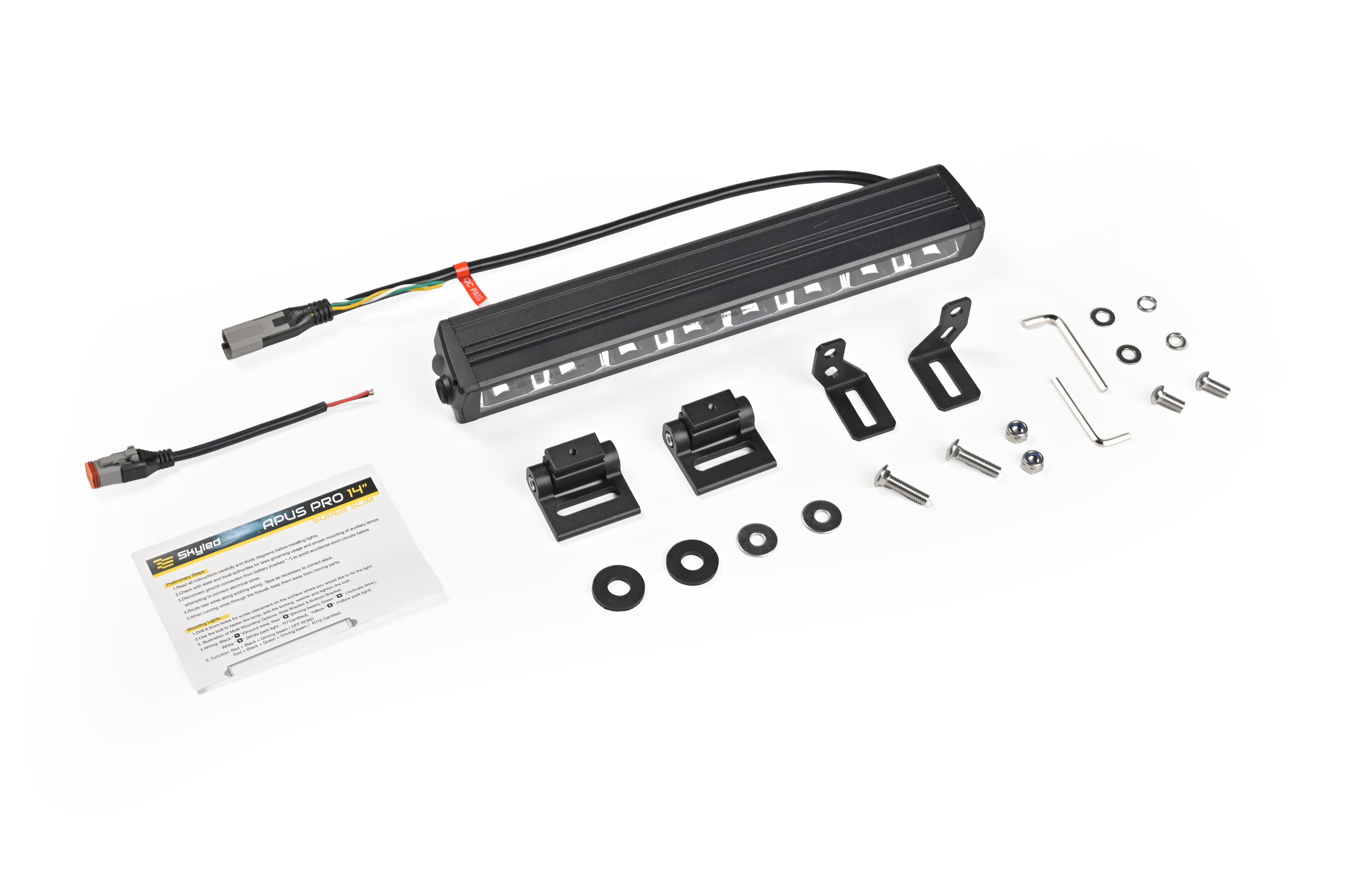 LED BAR SKYLED APUS PRO 14" jest to wersja listwy led o obniżonej wysokości, dzięki czemu daje możliwość zastosowania jej w zabudowie. Pasuje do każdego rodzaju pojazdu. APUS PRO wyposażony został w dwa tryby światła dalekosiężnego. Tryb z homologowany ECE o mocy 3000 Lumenów oraz wzmocniony tryb OFFROAD 7600 Lm. Listwa posiada dwukolorowe światło pozycyjne - białe oraz pomarańczowe (barwa światła wybierana przy instalacji poprzez wybranie dedykowanego przewodu). Mocowanie boczne, jak i przesuwane mocowanie dolne, zapewnia większą elastyczność montażu.