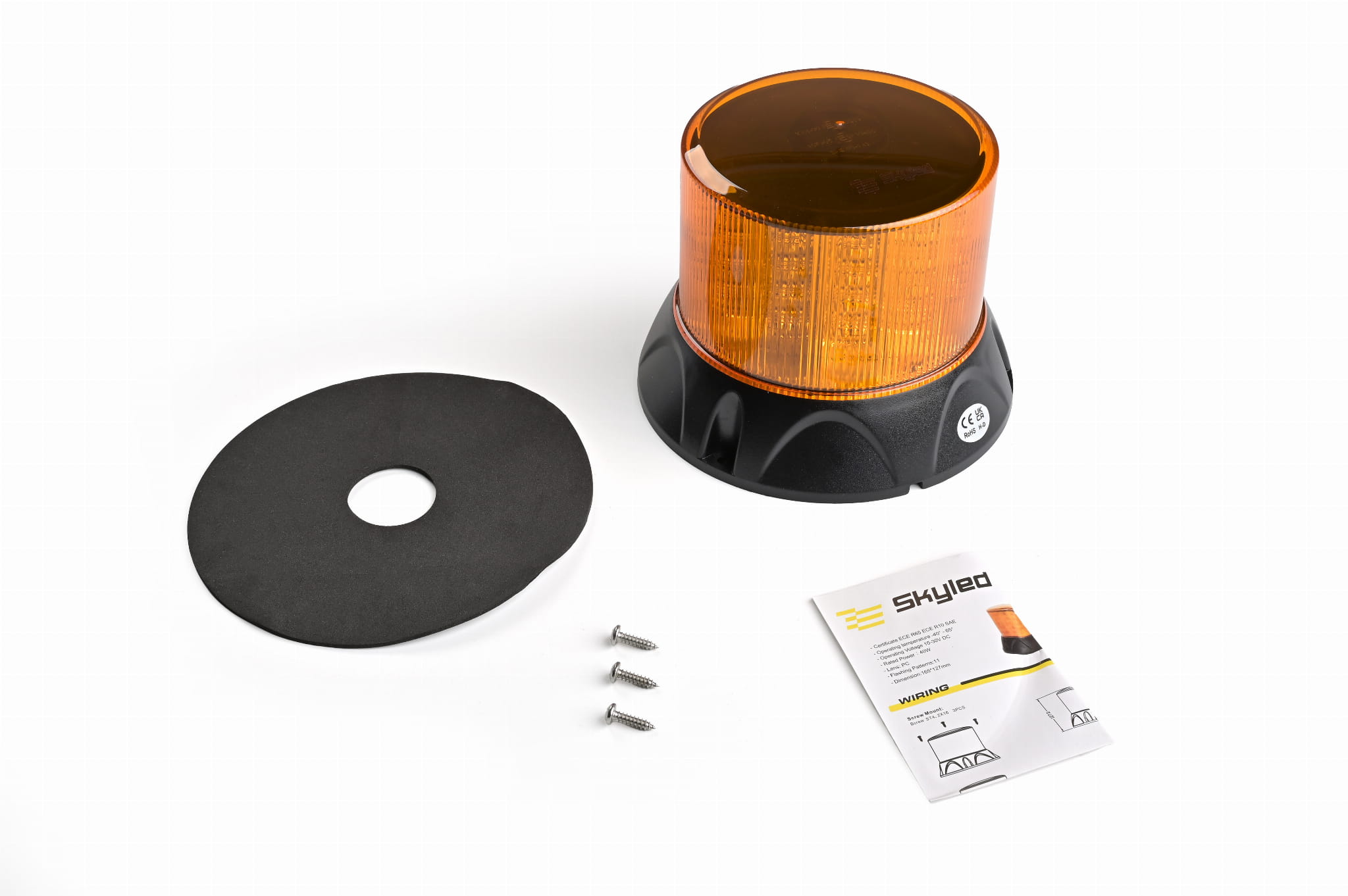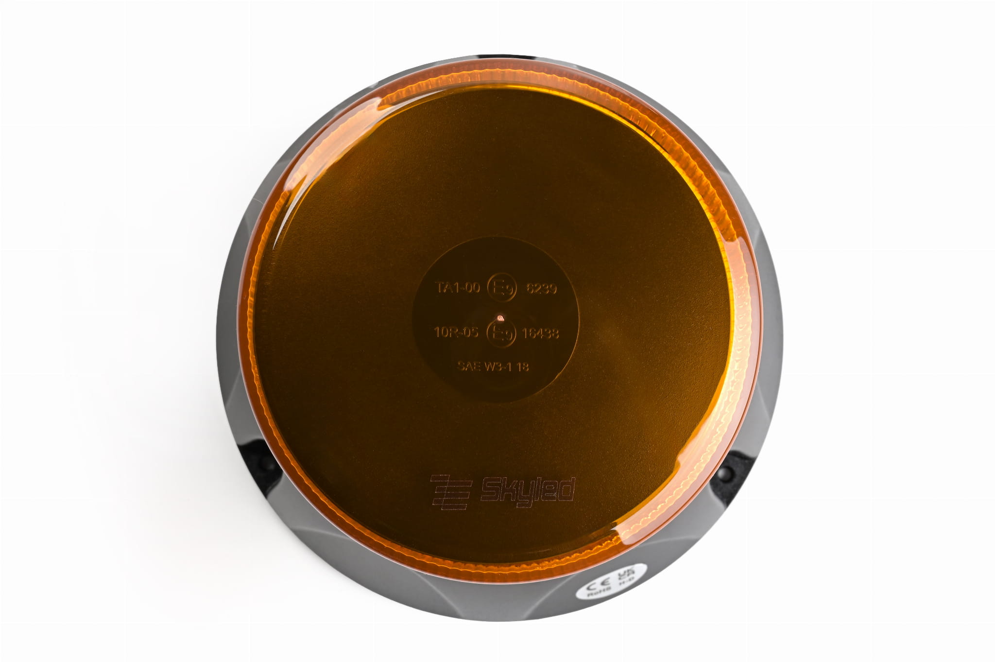 Światło ostrzegawcze (kogut) SKYLED 12-24V (3 śrubki, pomarańczowy klosz, R65) wys: 127 mm I śr: 165 mm, nr kat. 13SL10035A
