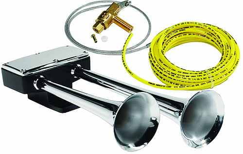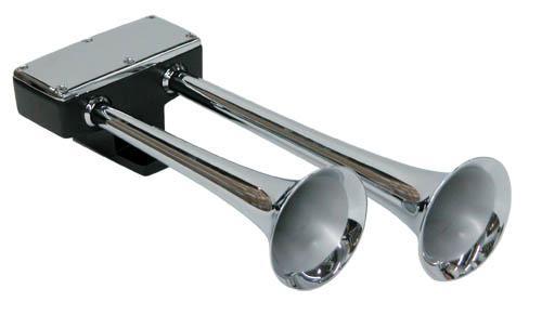 Podwójny sygnał pneumatyczny z czarną obudową. Wyprodukowany przez firmę HADLEY. Sygnały Hadley posiadają niespotykany design i indywidualny dźwięk, dlatego są rozpoznawane na całym świecie. W komplecie pełen zestaw montażowy oraz zawór na sznurek.